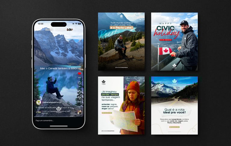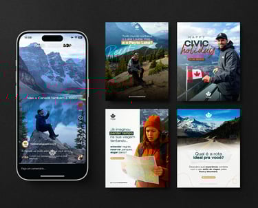 Agência de turismo especializada em roteiros exclusivos pelo Canadá, com foco em experiências imersivas. Produzimos reels, roteiros de conteúdo e legendas estratégicas, conectando viajantes brasileiros às paisagens e atrações mais icônicas do país.